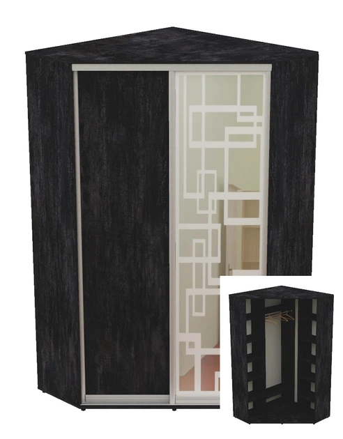 Шафа-купе дводверна кутова Алекса 110*110*240 Індастріал ДСП/Дзеркало з піскострумним малюнком Угол-1