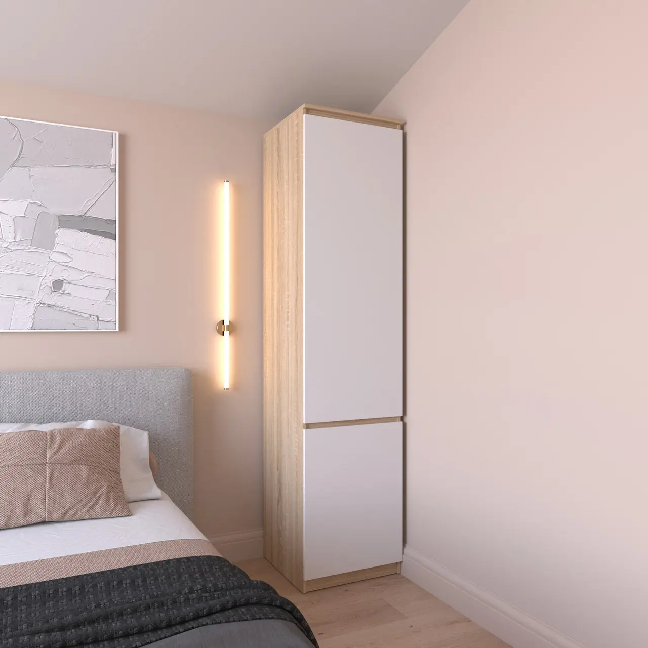 Шафа пенал Vays R-22 Дуб Сонома-Білий фасад, з полицями, ЛДСП, 50×50×211 см - для одягу, білизни, зберігання, спальня, перед