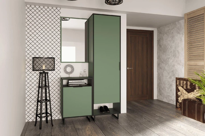 Шафа-пенал з вішалкою для одягу на ніжках від Moreli F-0005 Зелений Димчастий