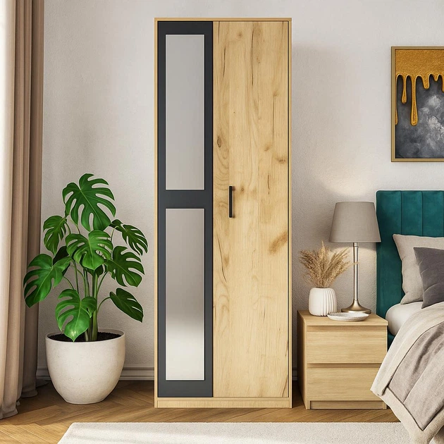 Сучасна маленька шафа платтяна розпашна дводверна з дзеркалом 70 см для одягу в стилі модерн у спальню кімнату ЛДСП Віва Гар
