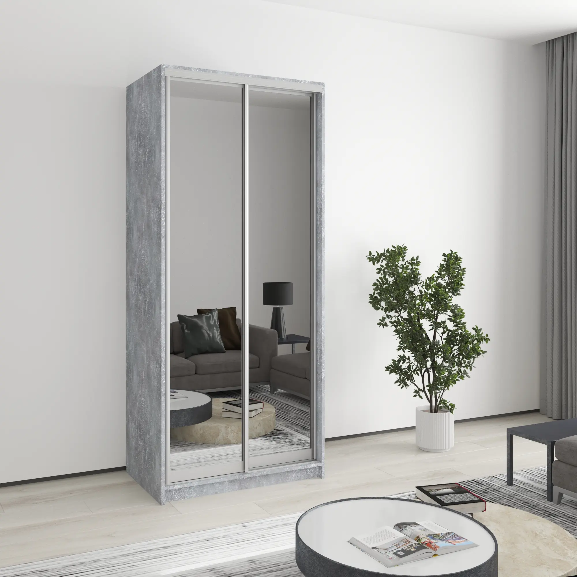 Шафа-купе дводверна MebelStar Стандарт AL 2 Дзеркала 90x45x210 см Бетон (MBS-2494)