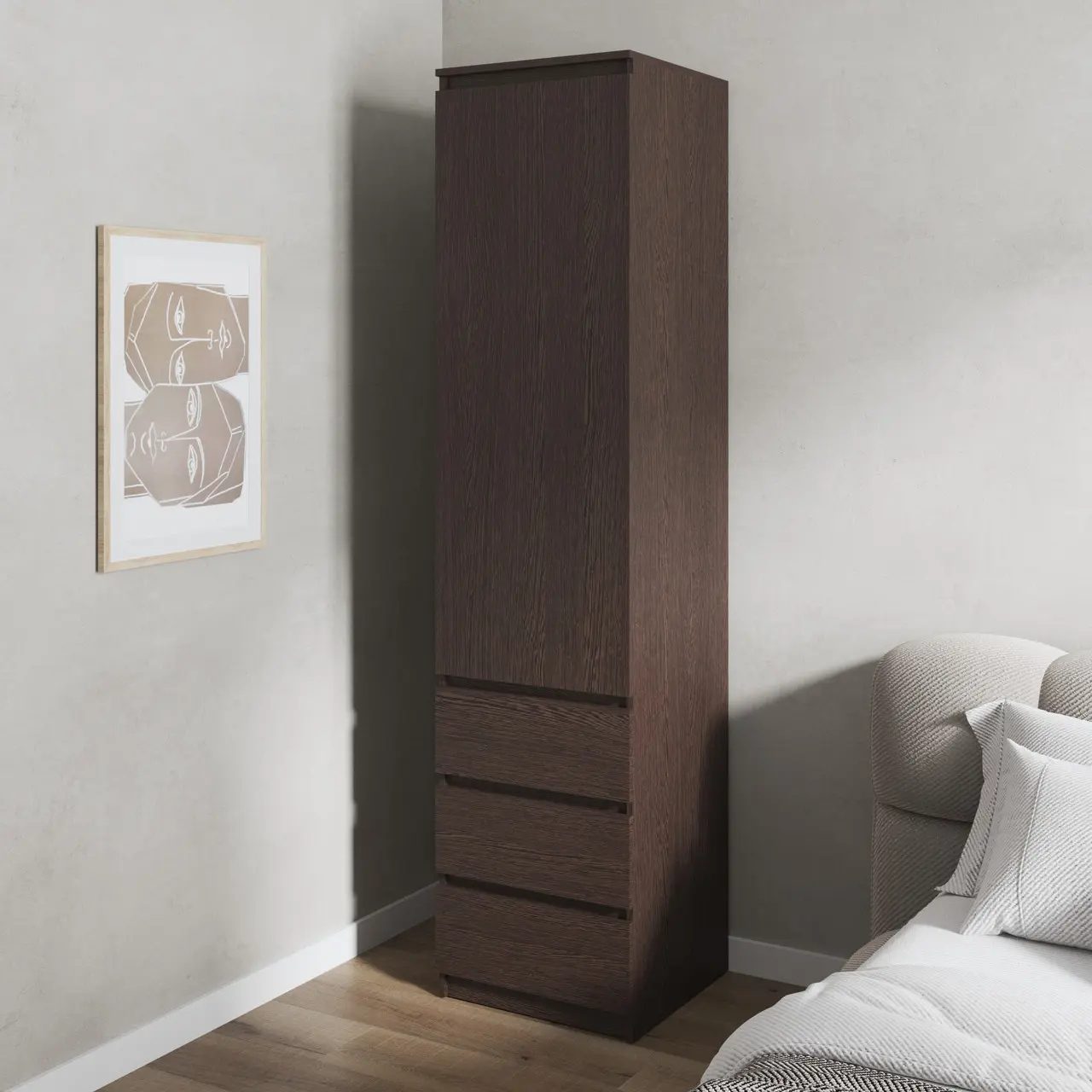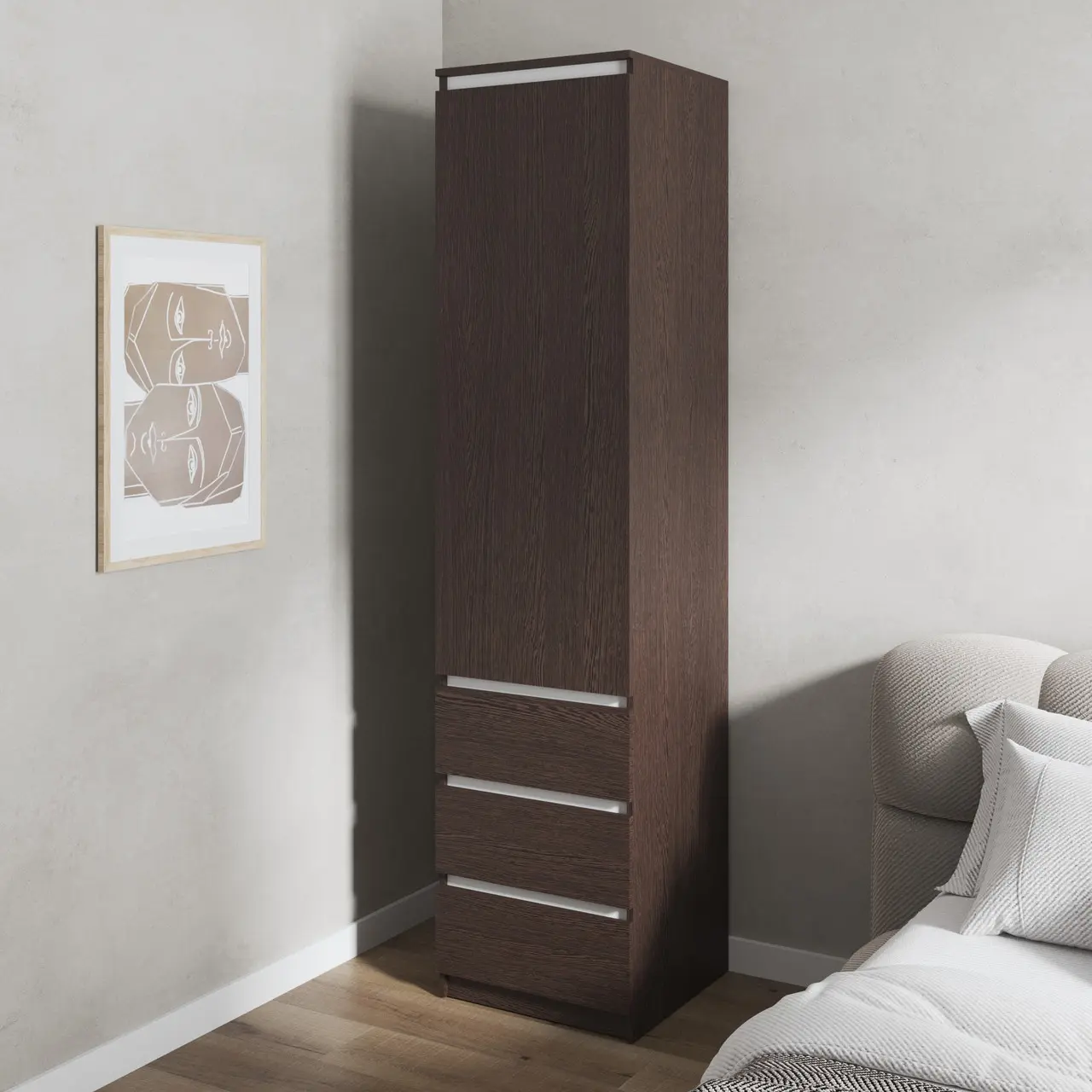 Шафа для одягу Vays, пенал з полицями та шухлядами, без ручок R-35 Венге Темний
