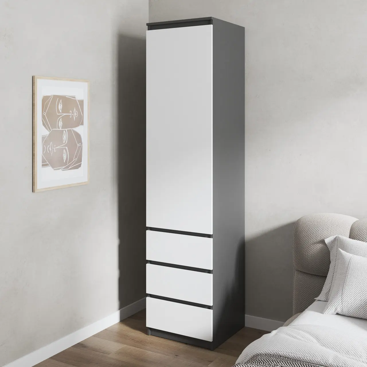 Шафа для одягу Vays, пенал з полицями та шухлядами, без ручок R-35 Антрацит-Білий фасад