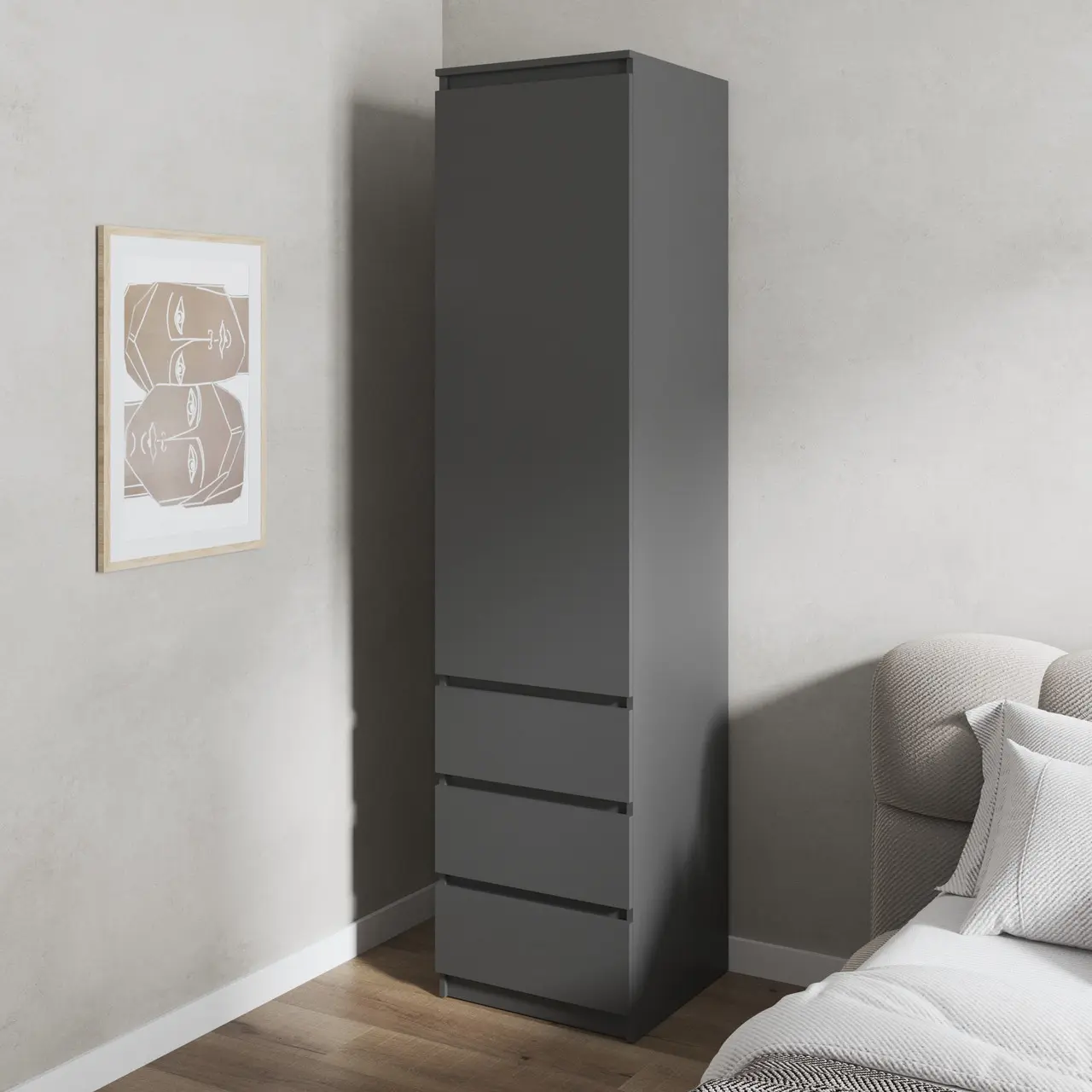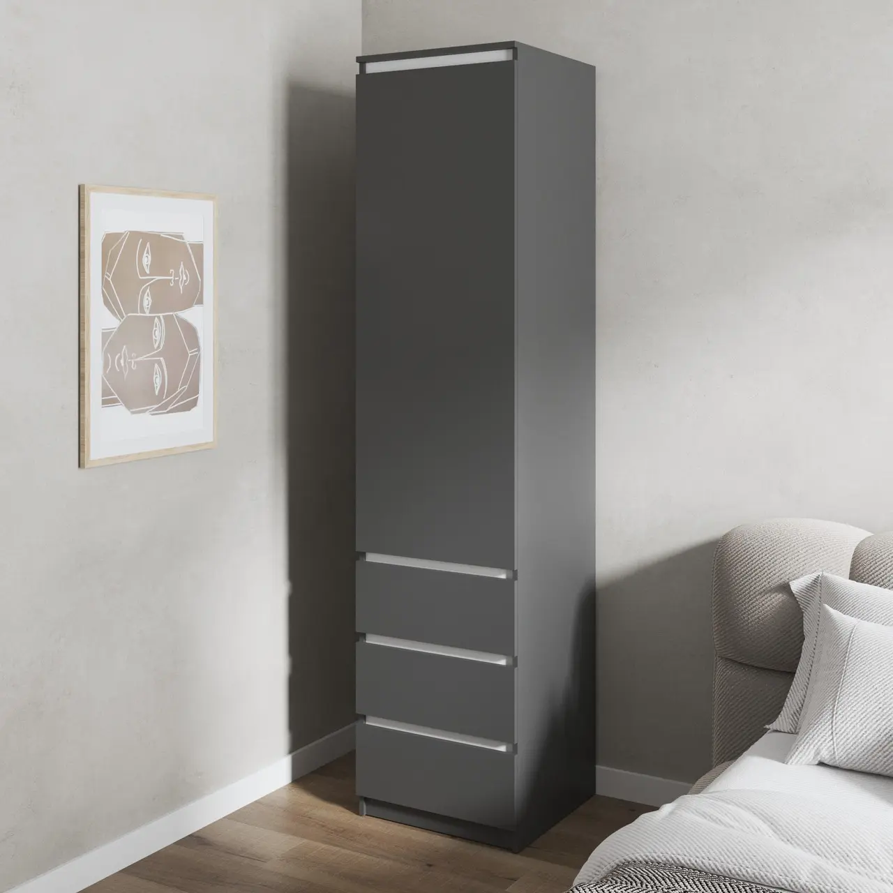Шафа для одягу Vays, пенал з полицями та шухлядами, без ручок R-35 Антрацит