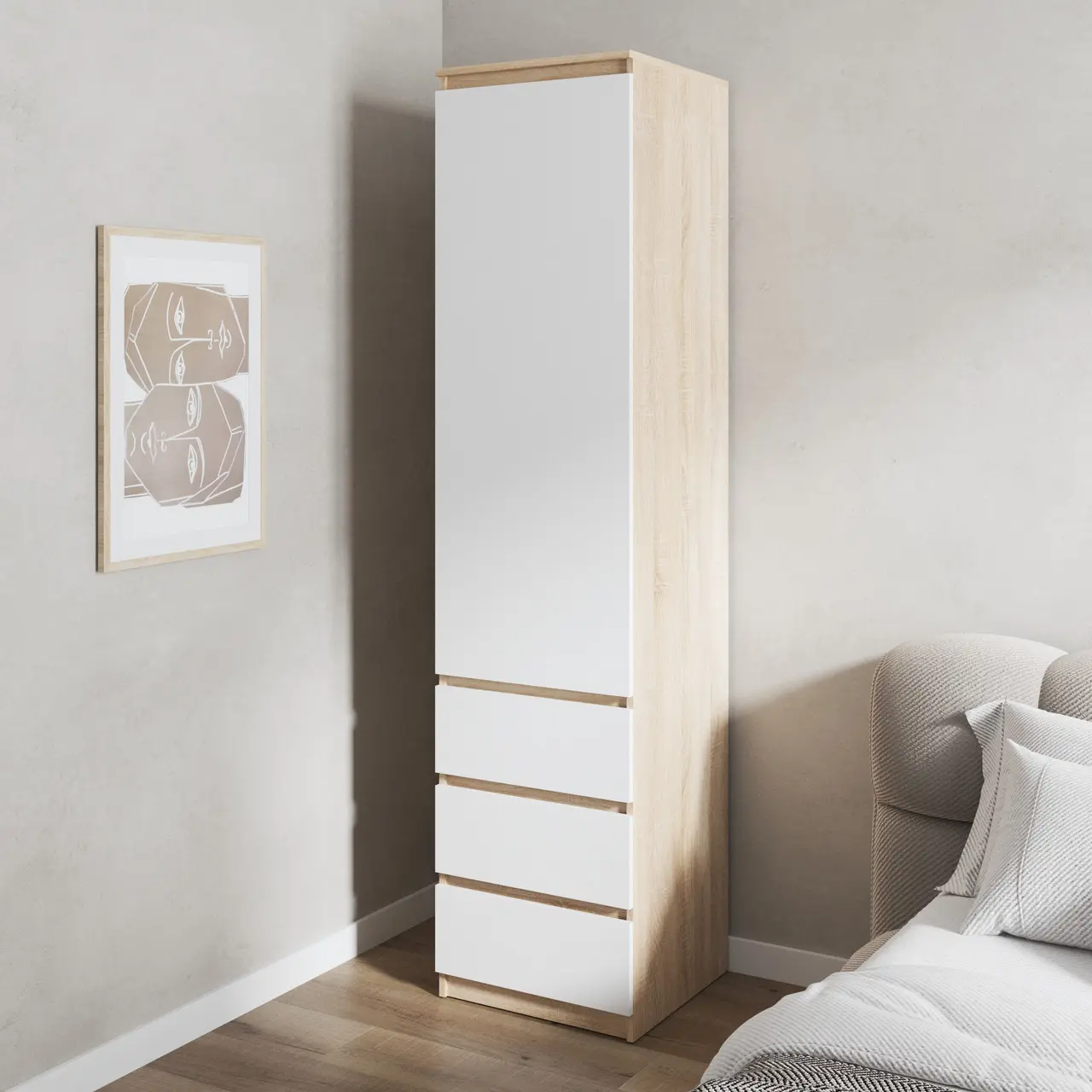 Шафа для одягу Vays, пенал з полицями та шухлядами, без ручок R-35 Дуб Сонома-Білі планки
