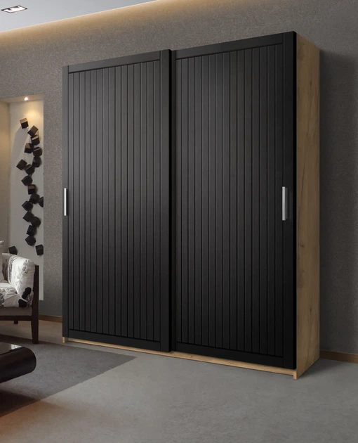 Шафа-купе дводверна SENAM М-Line 215*250*57см ДСП Дуб крафт Золотий (Фасад МДФ плівковий Онікс, фрезерування "Прованс") МШК1