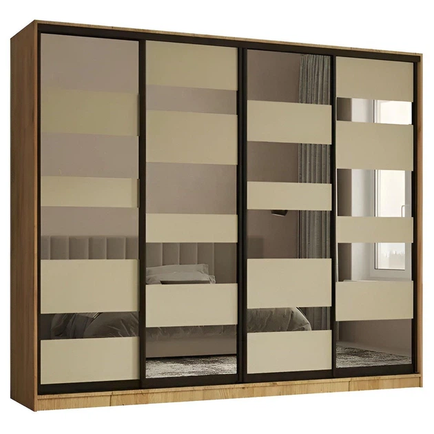 Шафа-купе чотиридверна Комфорт Меблі 400*60*240 см Натуральний 4 двері Дзеркало Стандарт