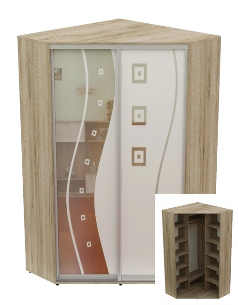 Шафа-купе дводверна кутова Алекса 100*100*240 Дуб Сонома трюфель Дзеркало з піскострумним малюнком Угол-1
