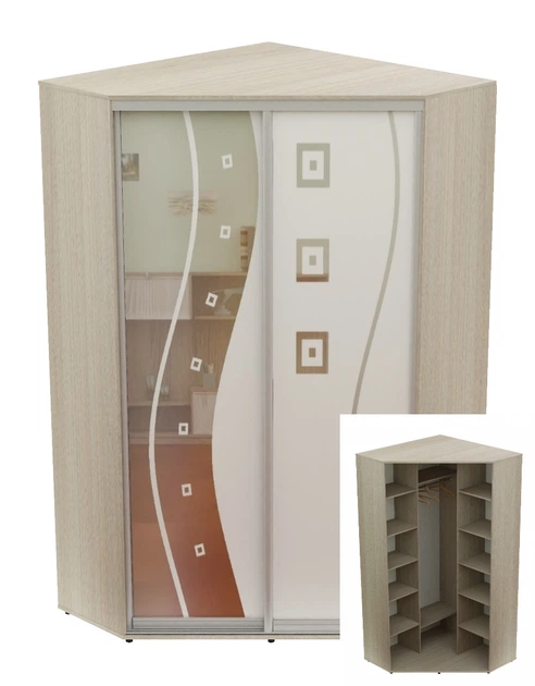 Шафа-купе дводверна кутова Алекса 100*100*240 Дуб Шамони світлий Дзеркало з піскострумним малюнком Угол-1