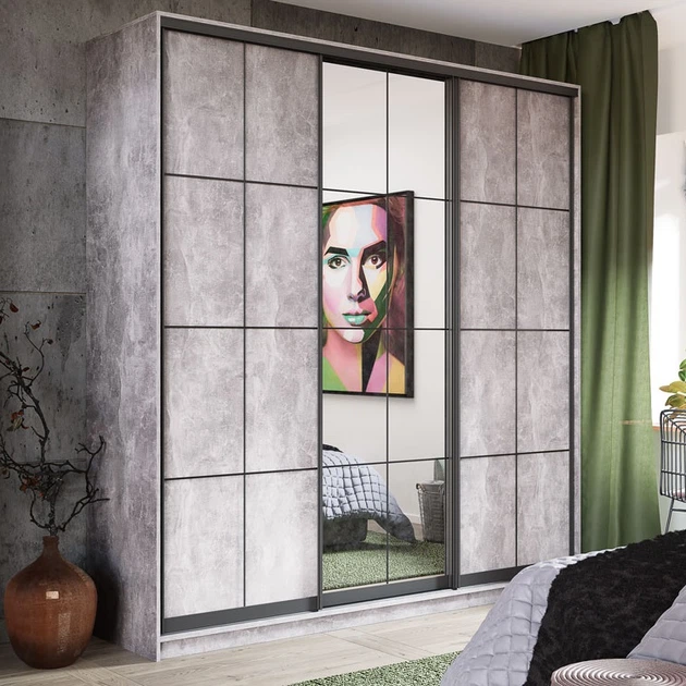 Шафа купе з трьома дверима ALTO Black (177.5х60х240) Бетон