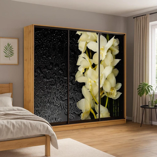 Шафа-купе тридверна Алекса 250*45*250 Венге магія Дзеркало з піскострумним малюнком ШК-05