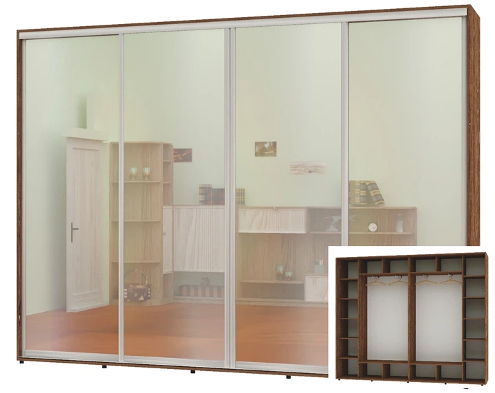 Шафа-купе чотиридверна Алекса 280*45*250 Горіх селект кам'яний 4 двері Дзеркало