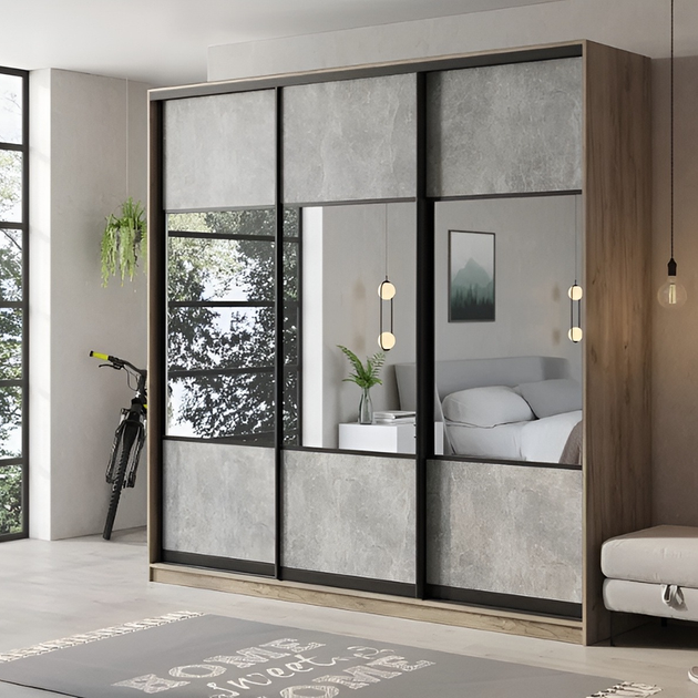 Шафа купе трьохдверна Garant ST-4 (220х45х220) Дуб Крафт сірий-Індастріал