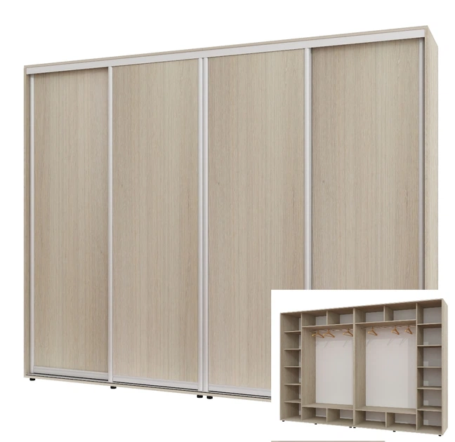 Шафа-купе чотиридверна Алекса 280*60*250 см Дуб Шамоні світлий 4 двері ДСП ШК-02