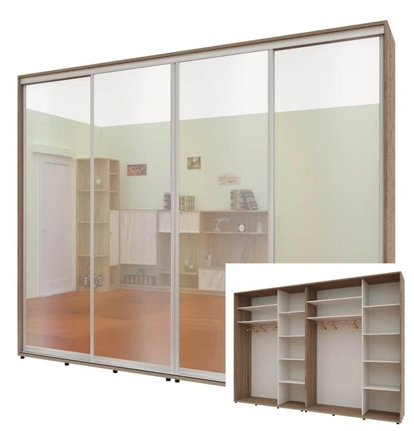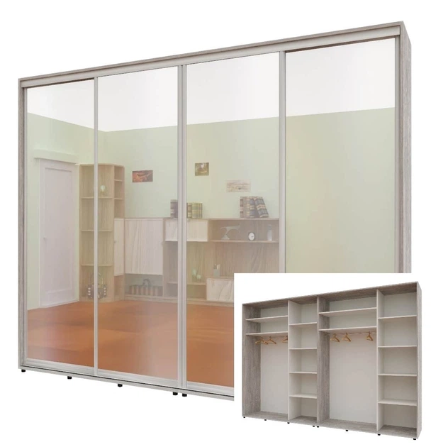 Шафа-купе чотиридверна Комфорт Меблі 300*60*240 см Дуб молочний 4 двері Дзеркало Стандарт