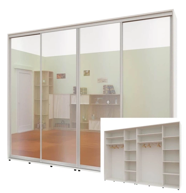 Шафа-купе чотиридверна Комфорт Меблі 300*60*240 см Білий 4 двері Дзеркало Стандарт