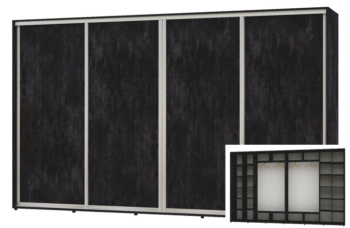 Шафа-купе чотиридверна Алекса 400*45*250 Бетон темний 4 двері ДСП