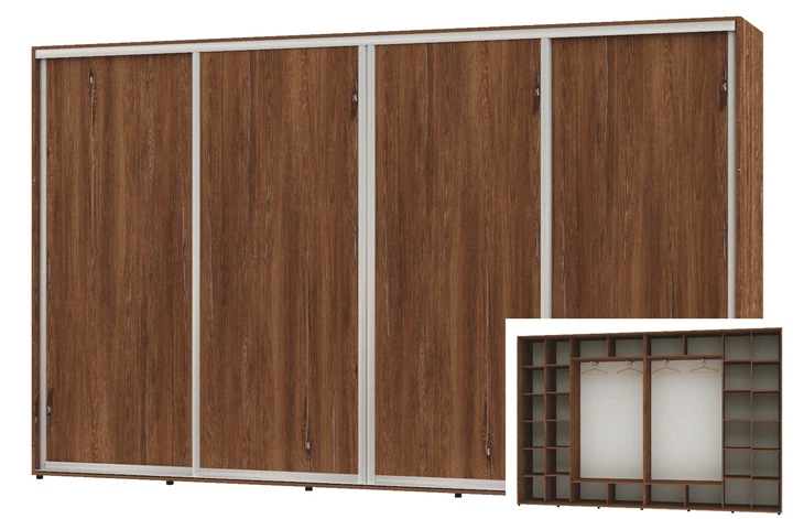 Шафа-купе чотиридверна Алекса 400*45*250 Горіх селект кам'яний 4 двері ДСП