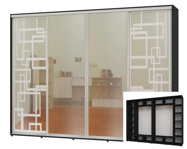Шафа-купе чотиридверна Алекса 350*45*250 Індастріал 2 Дзеркала з піскострумним малюнком/2 Дзеркала
