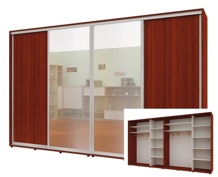 Шафа-купе чотиридверна Комфорт Меблі 340*60*210 см Горіх ДСП + Дзеркало + Дзеркало + ДСП Стандарт