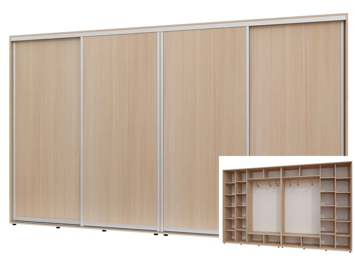 Шафа-купе чотиридверна Алекса 400*60*240 см Дуб молочний 4 двері ДСП ШК-02