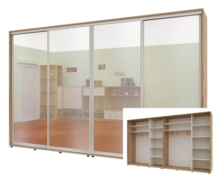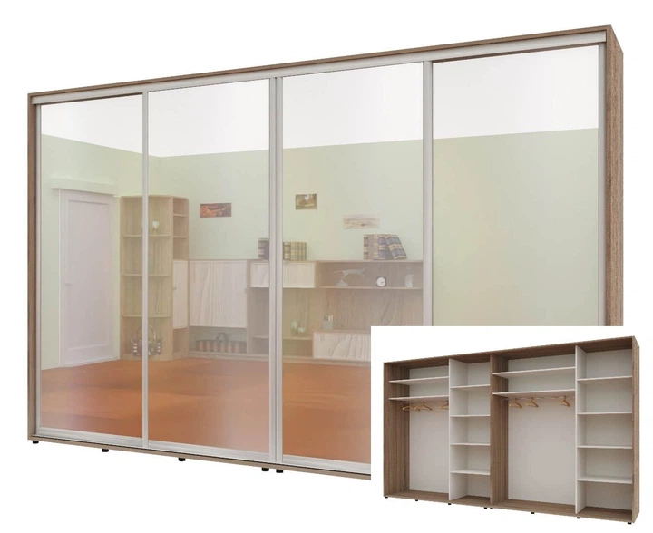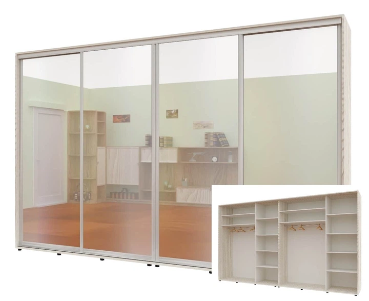 Шафа-купе чотиридверна Комфорт Меблі 340*45*220 см Натуральний 4 двері Дзеркало Стандарт