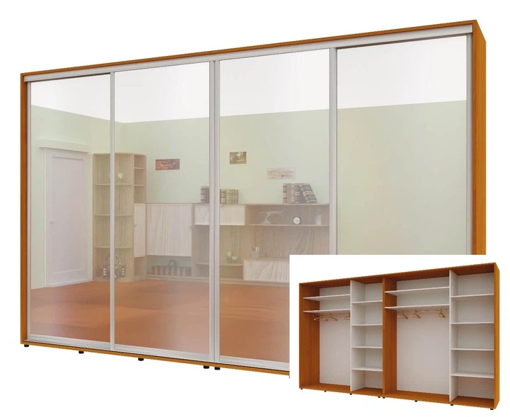 Шафа-купе чотиридверна Комфорт Меблі 340*45*220 см Вільха 4 двері Дзеркало Стандарт
