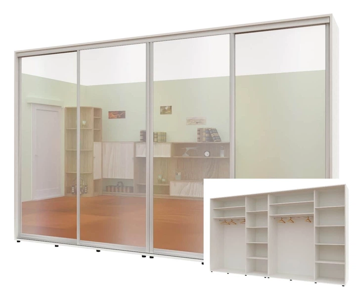 Шафа-купе чотиридверна Комфорт Меблі 340*45*220 см Білий 4 двері Дзеркало Стандарт