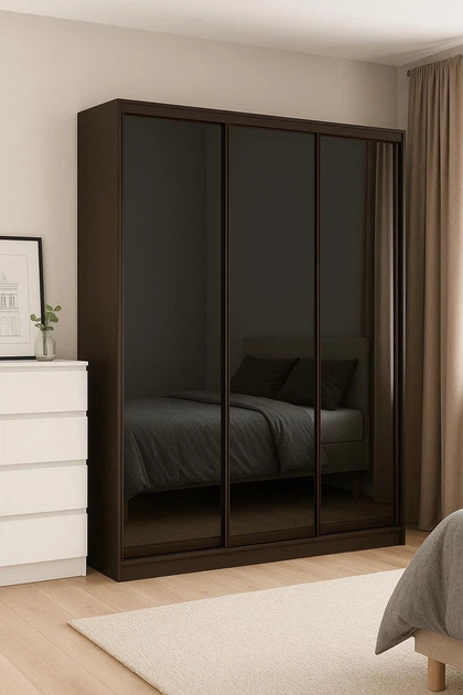 Шафа купе Київський Стандарт трьохдверна дзеркало графіт 230*240*60 Венге магія