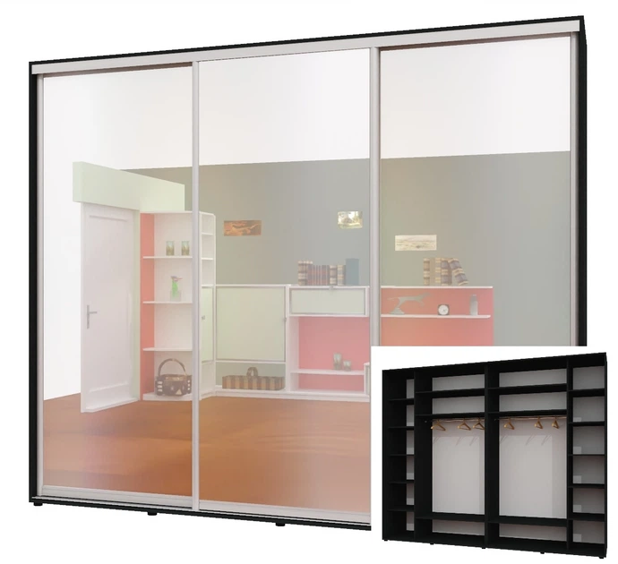 Шафа-купе тридверна Алекса 300*60*220 см Антрацит 3 двері Дзеркало Люкс-147