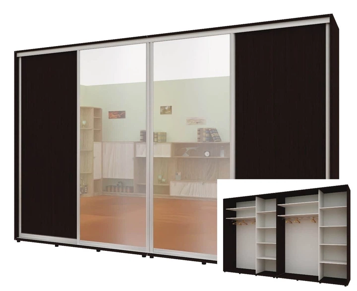 Шафа-купе чотиридверна Комфорт Меблі 380*45*240 см Венге ДСП + Дзеркало + Дзеркало + ДСП Стандарт