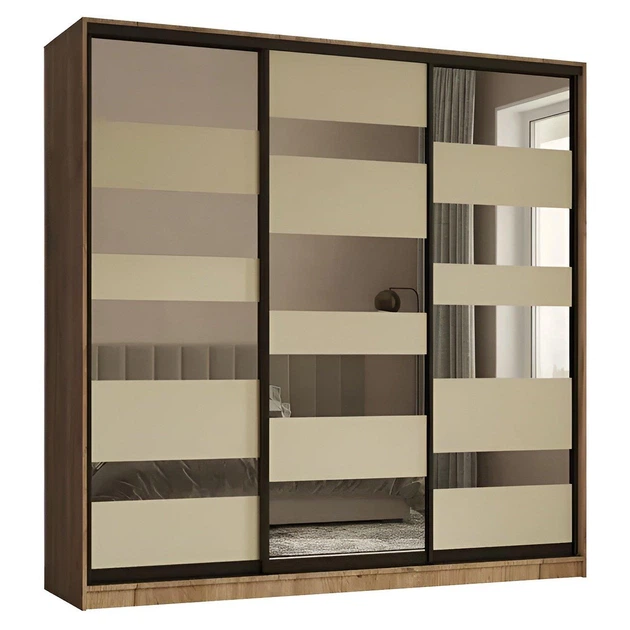 Шафа-купе тридверна Алекса 300*60*220 см Дуб Шамоні світлий 3 двері Дзеркало Люкс-147