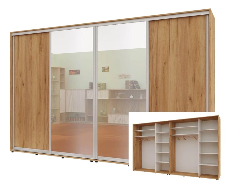 Шафа-купе чотиридверна Комфорт Меблі 360*60*220 см Натуральний ДСП + Дзеркало + Дзеркало + ДСП Стандарт