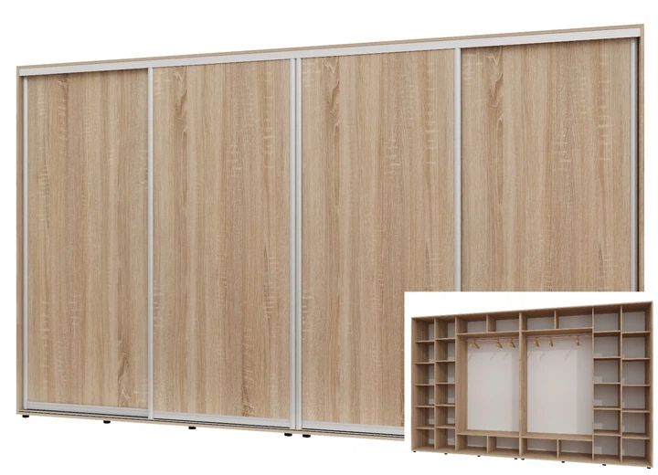 Шафа-купе чотиридверна Алекса 410*60*230 см Дуб Сонома 4 двері ДСП ШК-02
