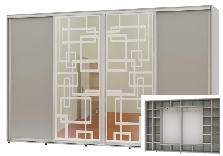 Шафа-купе чотиридверна Алекса 400*45*240 Сірий 2 ДСП/2 Дзеркала з піскострумним малюнком
