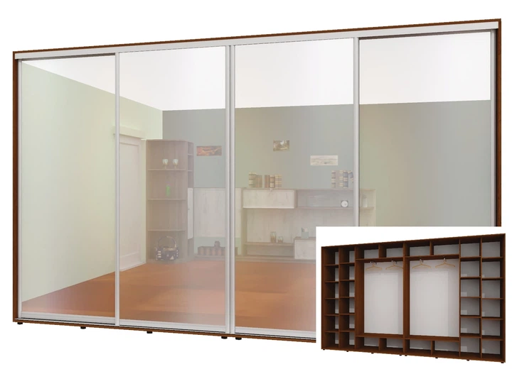 Шафа-купе чотиридверна Алекса 410*45*240 см Горіх лісовий 4 двері Дзеркало ШК-02