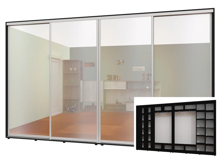 Шафа-купе чотиридверна Алекса 410*45*240 см Антрацит 4 двері Дзеркало ШК-02