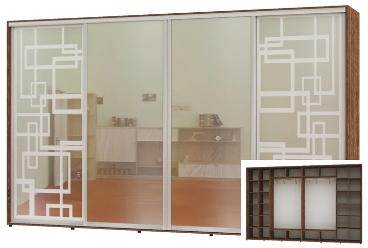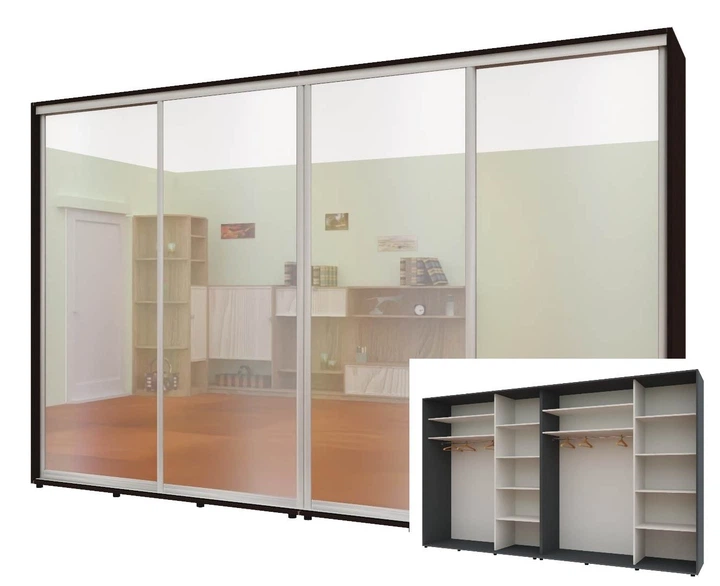 Шафа-купе чотиридверна Комфорт Меблі 380*45*220 см Горіх 4 двері Дзеркало Стандарт