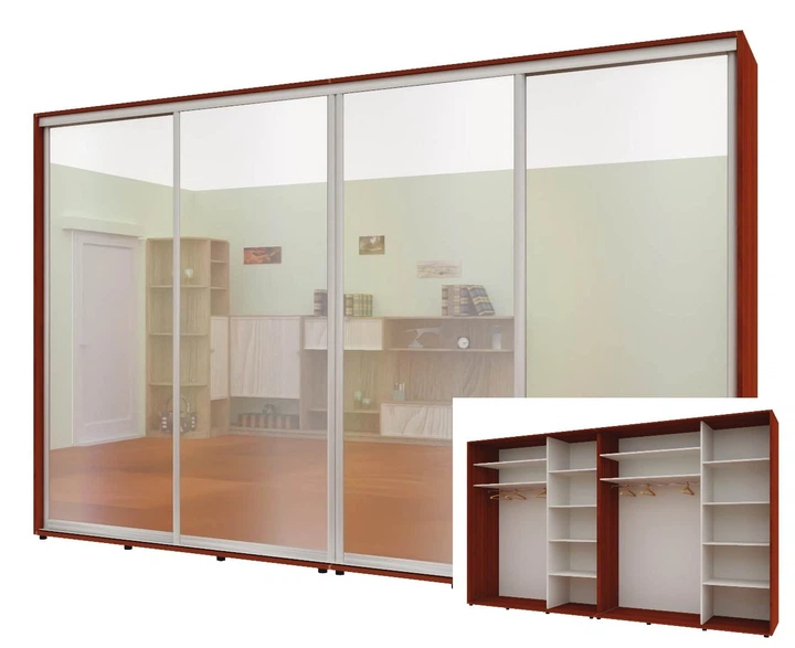 Шафа-купе чотиридверна Комфорт Меблі 380*45*220 см Вільха 4 двері Дзеркало Стандарт