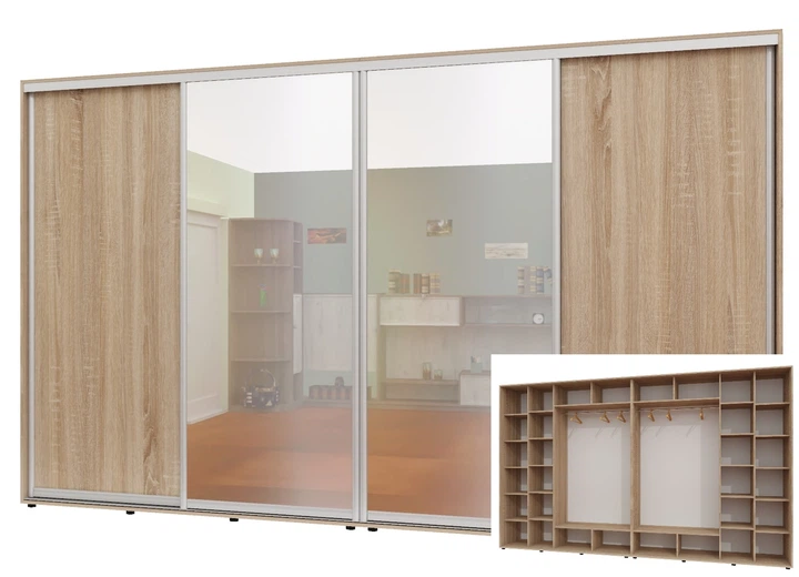 Шафа-купе чотиридверна Алекса 400*60*240 см Дуб Сонома 4 двері ДСП + Дзеркало + Дзеркало + ДСП ШК-02