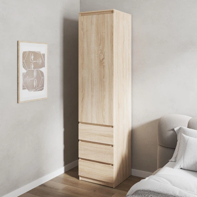 Шафа пенал 2110х502х500 для одягу з полицями на 3 висувних шухляди, фасади без ручок. Шафа для документів ДУБ СОНОМА
