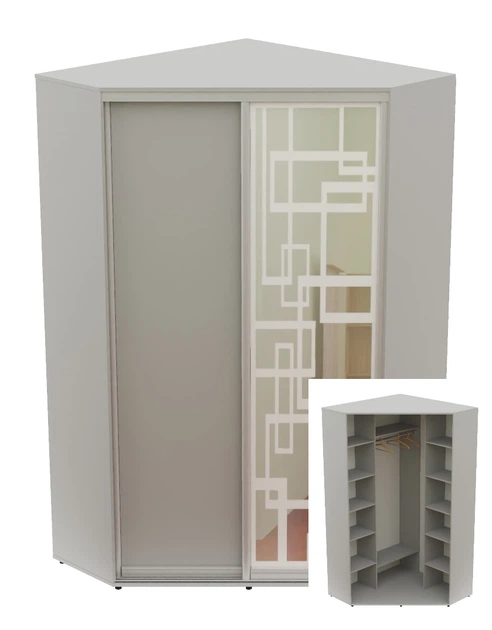 Шафа-купе дводверна кутова Алекса 130*130*240 Сірий ДСП/Дзеркало з піскострумним малюнком Угол-3