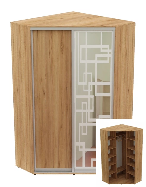 Шафа-купе дводверна кутова Алекса 130*130*250 см Дуб молочний 2 двері ДСП Кут-3