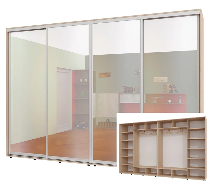 Шафа-купе чотиридверна Алекса 360*45*220 см Дуб молочний 4 двері Дзеркало ШК-02