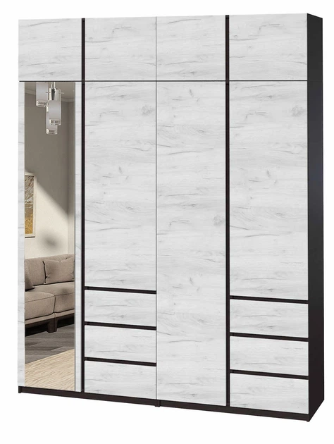 Шафа з дзеркалом Брайт 2000 х 520 х 2400 h Майстер Форм ДСП Венге магія / Дуб крафт білий (30916)