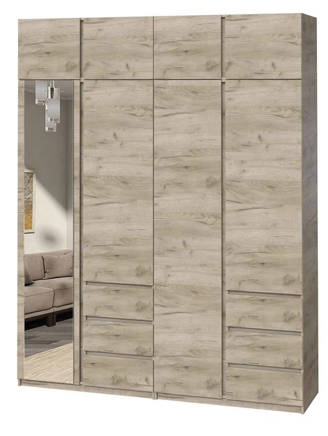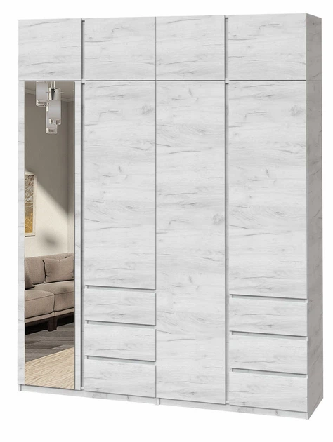 Шафа з дзеркалом Брайт 2000 х 520 х 2400 h Майстер Форм ДСП Дуб крафт білий (30919)