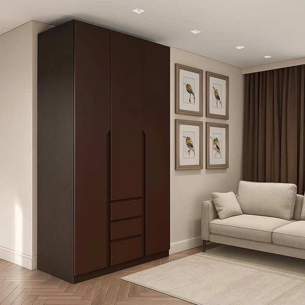 Шафа розпашна ШР7 SENAM 2500х1400х600 корпус Дуб Венге Магія фасад МДФ фарба Махагон коричневий (RAL 8016) фрезерована ручка