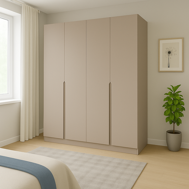 Шафа розпашна ШР4 SENAM 2500х1900х450 мм корпус ДСП Кашемір фасад МДФ фарба NCS S 2002-Y50R (Шовковистий мат) фрезерована ру