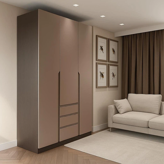 Шафа розпашна ШР7 SENAM 2500х1400х600 мм корпус ДСП Венге Магія фасад МДФ фарба RAL1019 (Сіро-бежевий) фрезеровані ручки V і