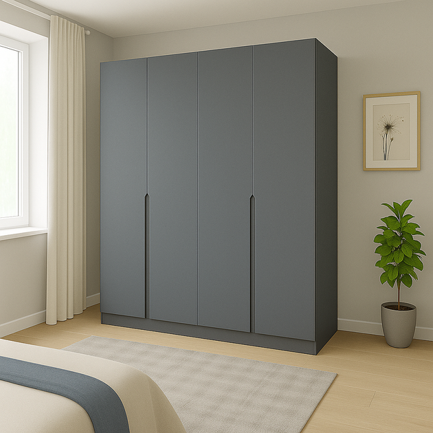 Шафа розпашна ШР4 SENAM 2500х1900х450 мм корпус ДСП Сірий Графіт фасад МДФ фарба RAL7012 (Базальтовий сірий) фрезерована руч